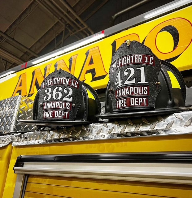 3 Banner Fire Helmet Shield w/ Center Image or Number